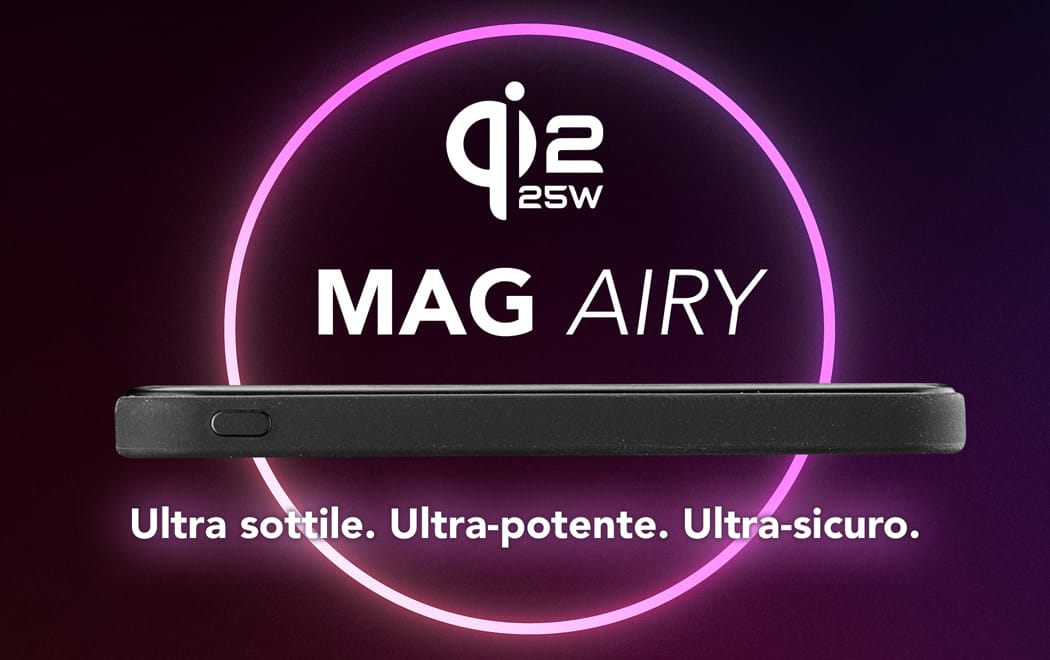 Ricarica wireless Qi2 25W rapida e sicura in soli 8 mm
