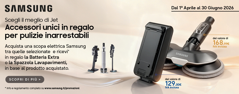 Pulisci la tua casa senza sforzo e con il massimo controllo. Il design ultra leggero assicura la massima praticità e riduce il rischio di traumi al polso. Il corpo della scopa pesa appena 1,44 kg, il 11% in meno[10] rispetto ai tradizionali aspirapolvere Samsung. In questo modo puoi pulire facilmente tutta la casa.