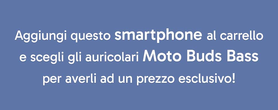 Il caricabatterie è in vendita separatamente. Velocità di ricarica massima TurboPower™ da 30 W in carica sul dispositivo; è necessario il caricabatterie Motorola TurboPower™ da 30 W o superiore; i caricabatterie di potenza superiore non aumentano la capacità di ricarica massima. Il caricabatteria varia a seconda del mercato. Per informazioni sulla disponibilità, contattare l'operatore o il rivenditore.